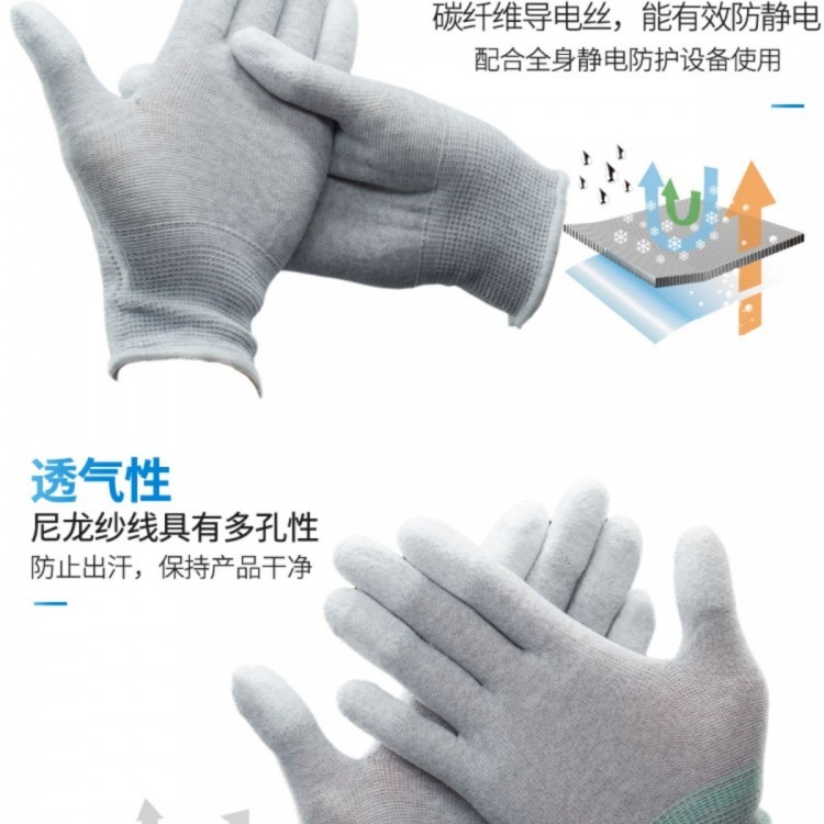 种类有防静电手套、防静电点塑(防滑)手套、防静电PU涂层手套(涂指或涂掌)等。