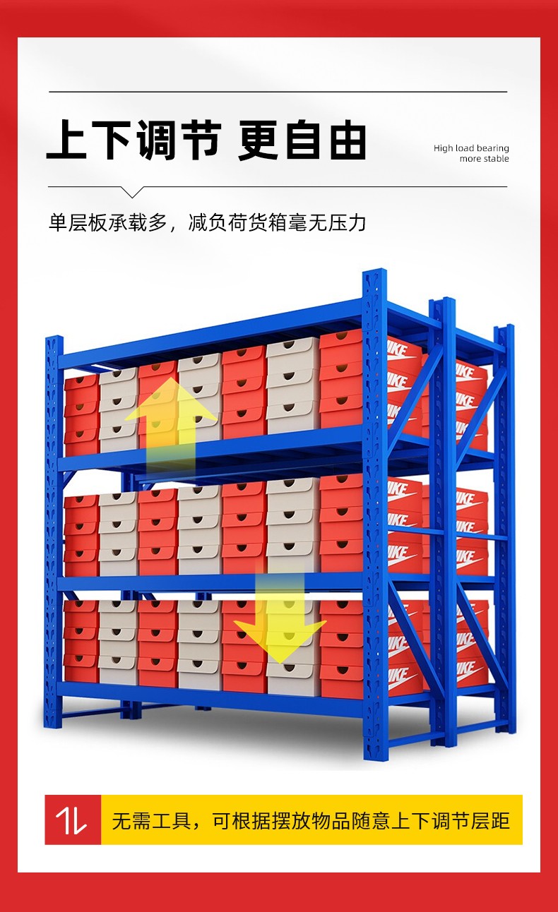 重型货架,又俗称横梁式货架,或称货位式货架,属于托盘货架类,在国内的各种仓储货架系统中常见一种货架形式。以立柱片+横梁形式的全组装结构,结构简明有效。可根据存储单元集装设备的特性加装如:隔档、钢层板(钢格板)、金属丝网层、仓储笼导轨、油桶架等功能性附件,能够满足不同单元集装设备形式的货物存储。